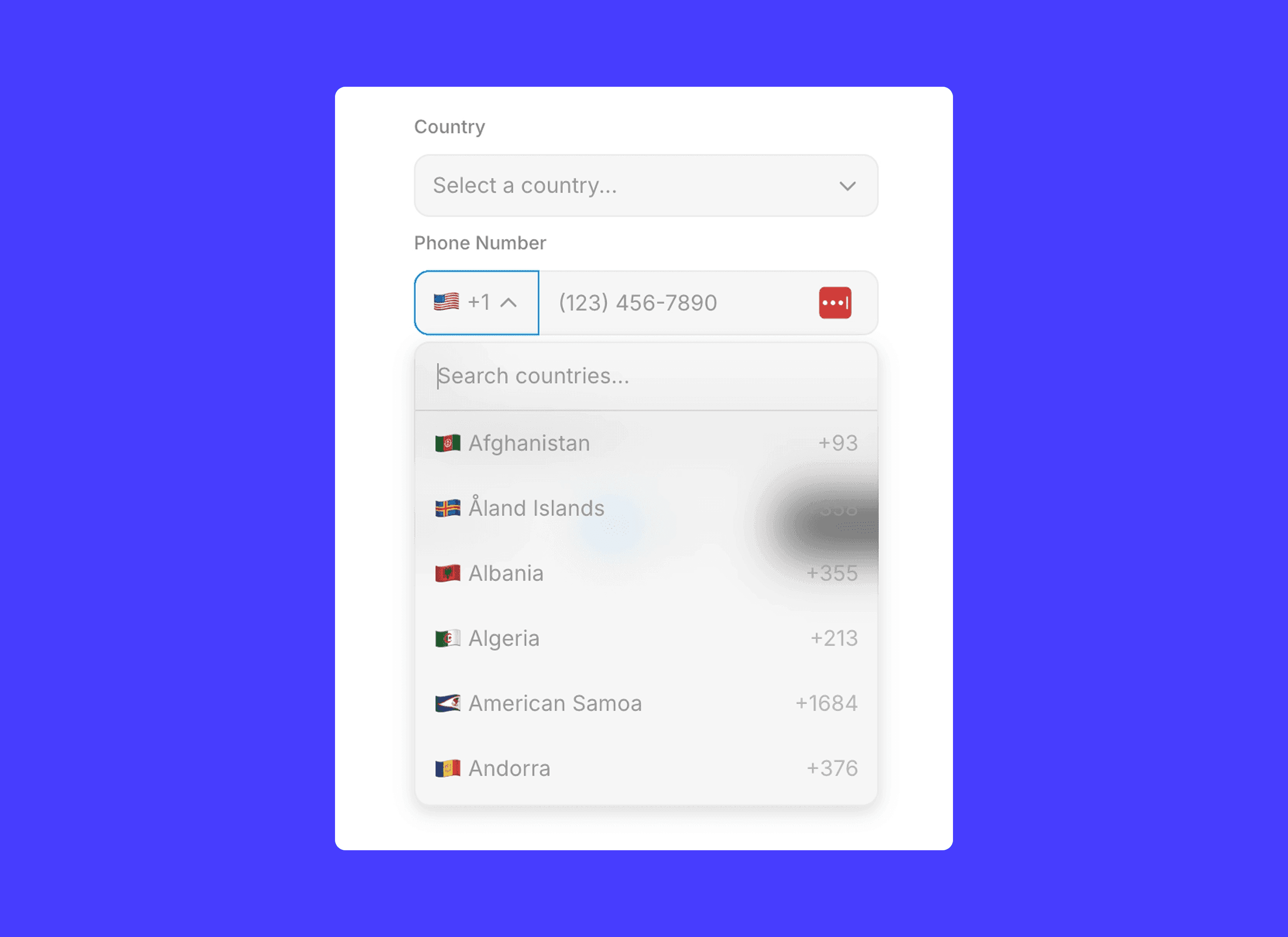💡 Note: This component can be combined with the Country input to automatically adjust the Phone Number Input component when the user selects the country first, just make sure the two components are within the same parent frame.