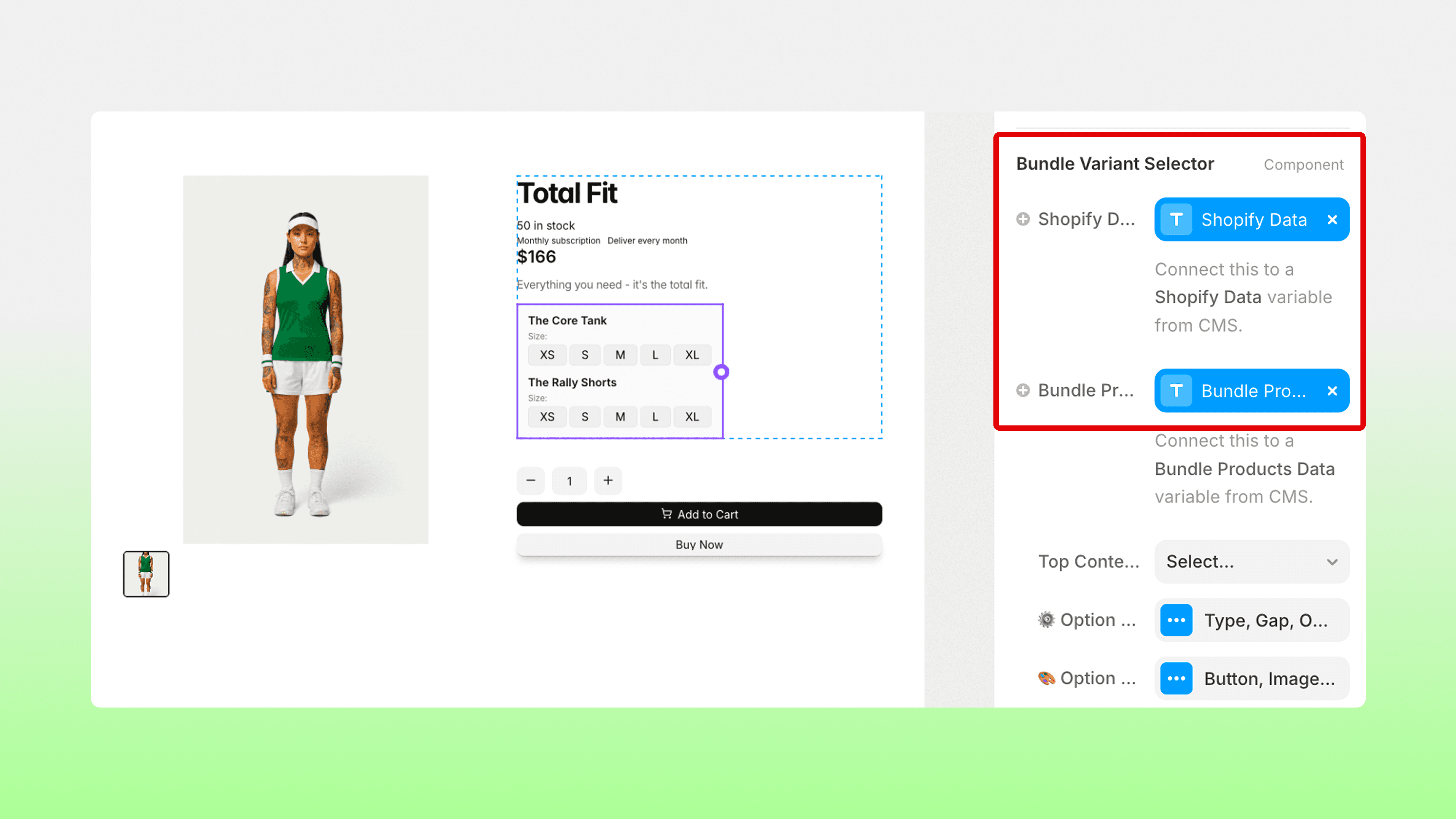 Once on your page, connect the Shopify Data and Bundle Products Data.