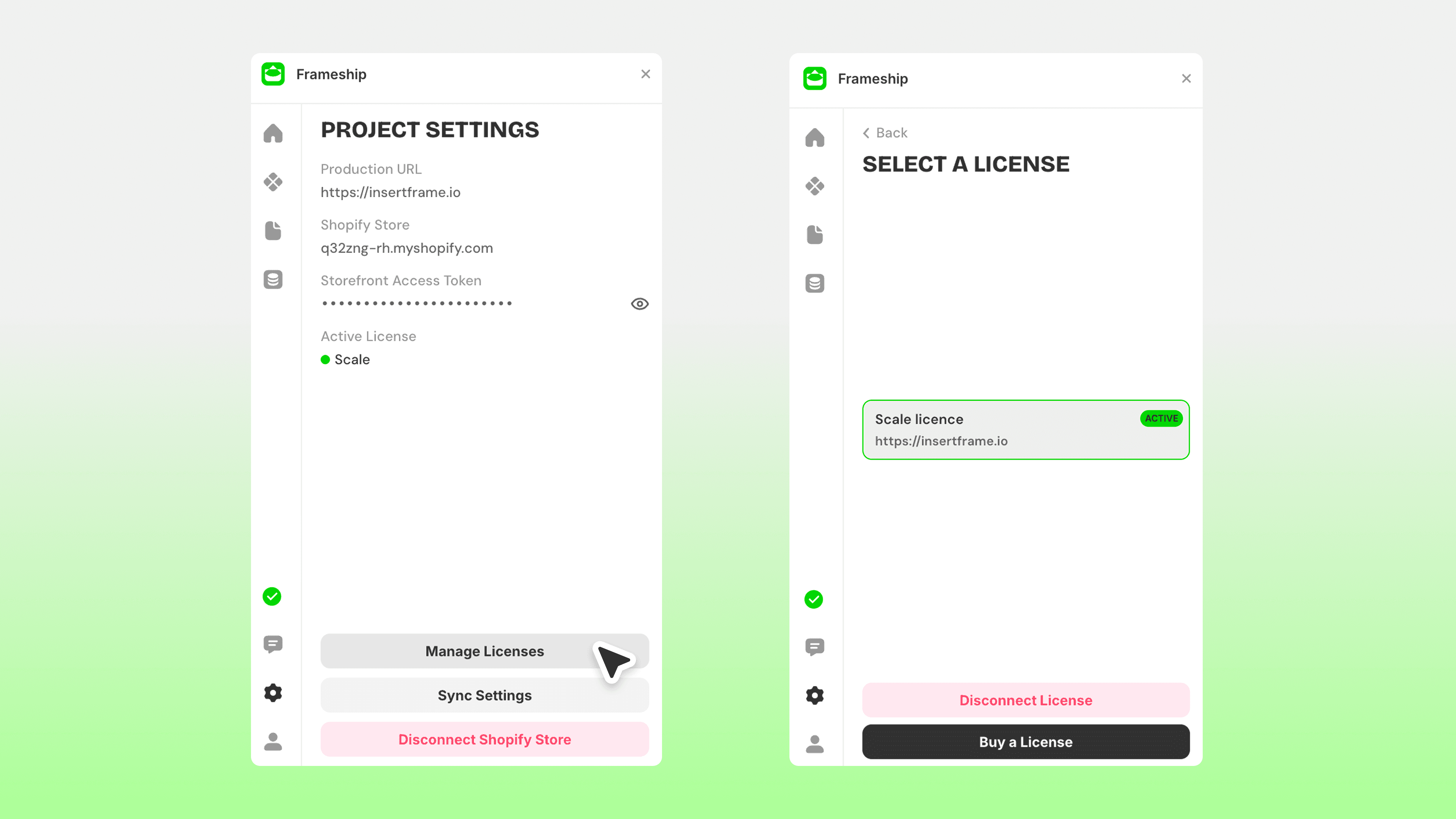 To reset this, disconnect both the license and the Shopify connection, then reconnect both.