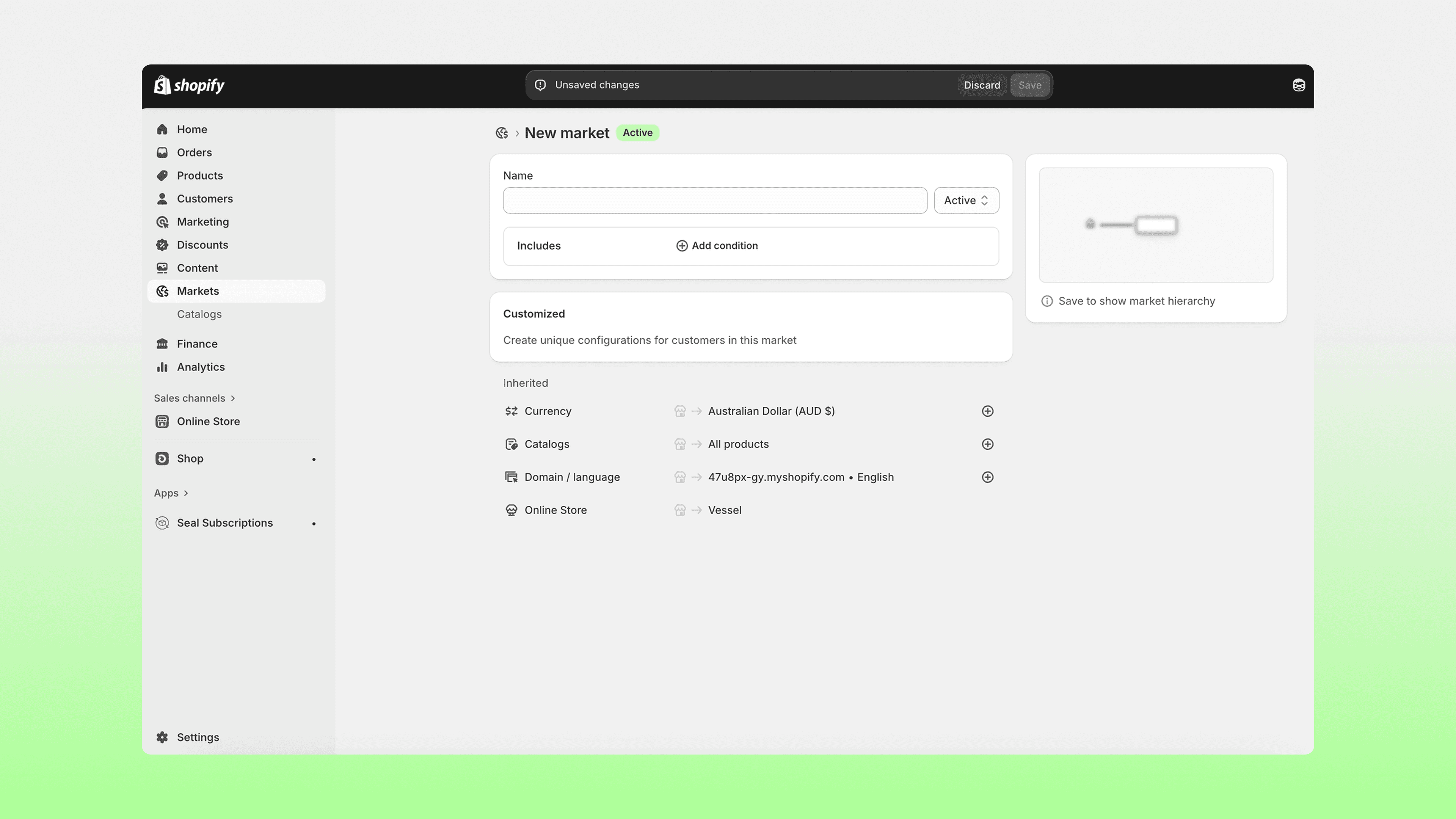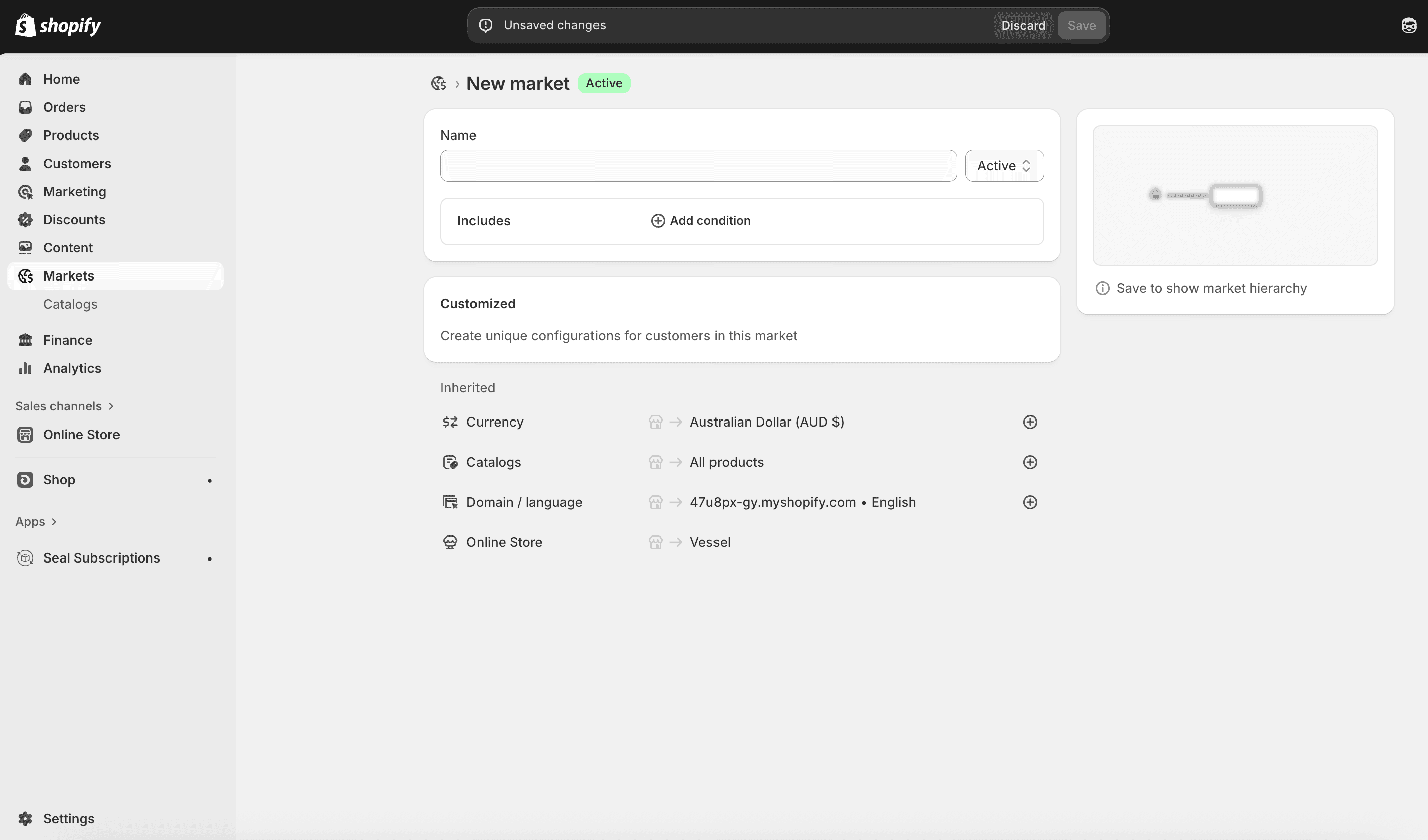 First, open your Shopify store and set up your intended Markets with the related currency.
