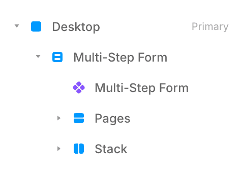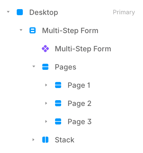 For each page of your form, create a stack inside the “Pages” layer.