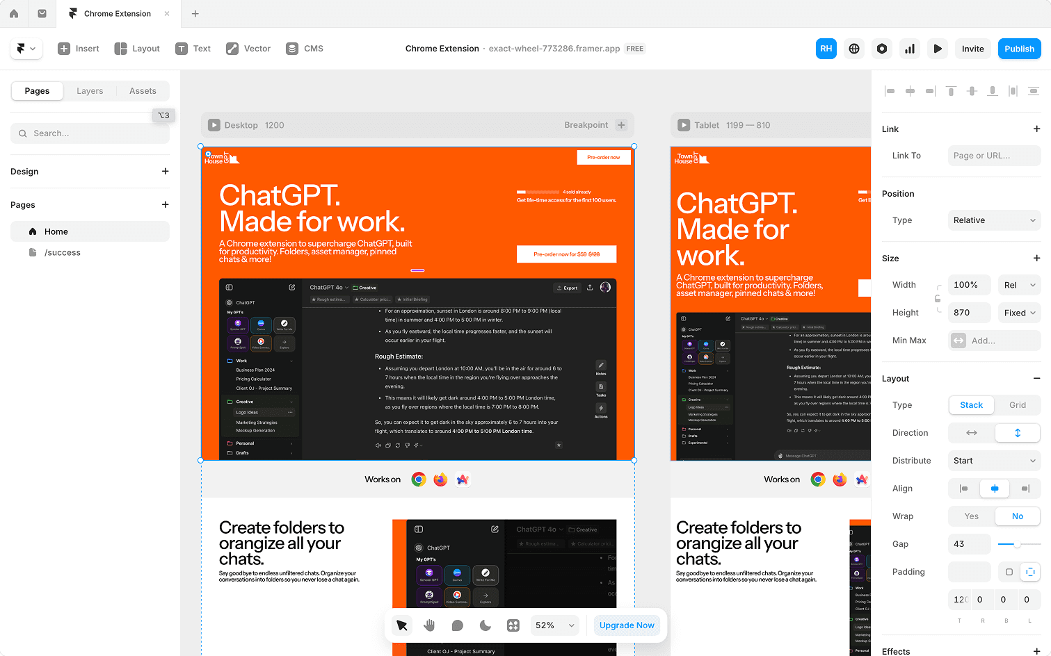 Framer lets your team go from design to live site without touching code. Less back-and-forth, faster delivery, and more margins per project. It’s why agencies are moving away from Webflow and WordPress.