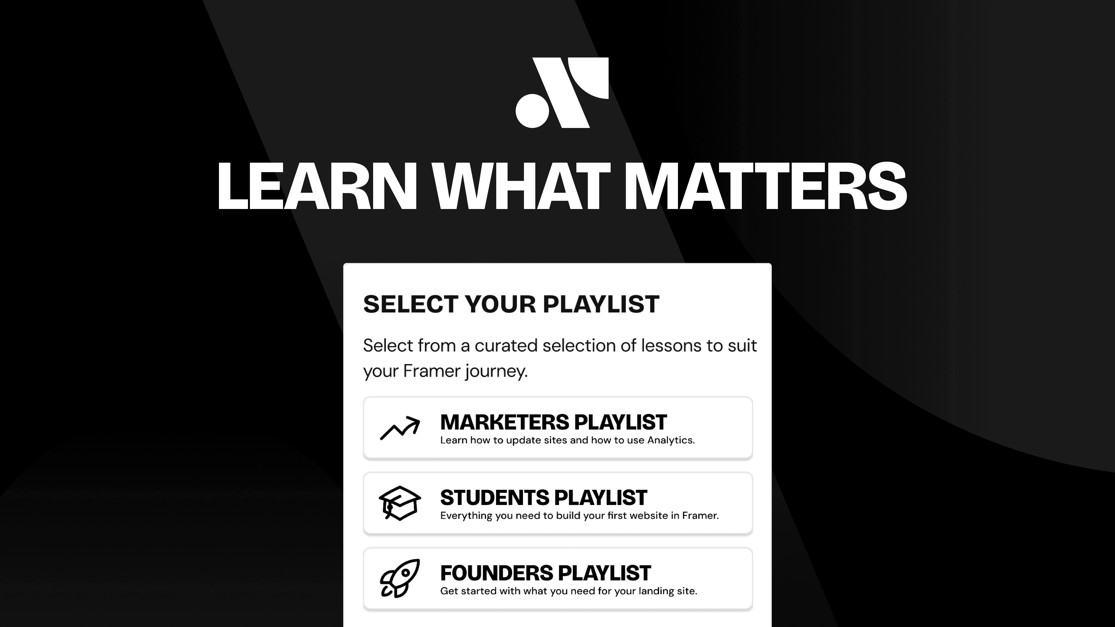 We've made it super easy to see the most relevant lessons for you to kickstart your Framer learning.